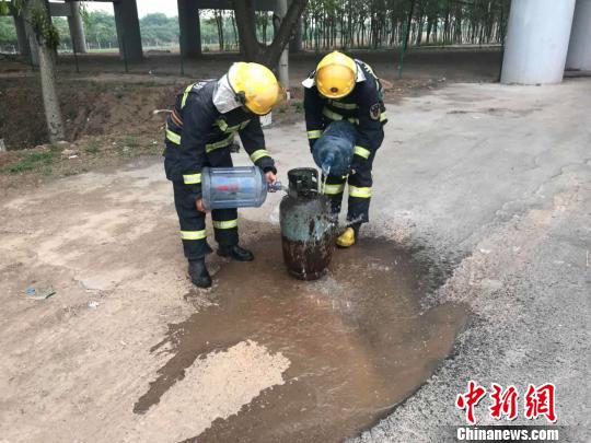 接到報(bào)警后,榆次區(qū)焦化路消防中隊(duì)迅速出動(dòng)2輛消防車(chē)、9名官兵趕赴現(xiàn)場(chǎng)。到達(dá)現(xiàn)場(chǎng)時(shí),液化氣罐正在持續(xù)噴火,火苗已經(jīng)烤裂了部分玻璃,好在沒(méi)有引燃彩鋼板,也沒(méi)有造成人員被困。