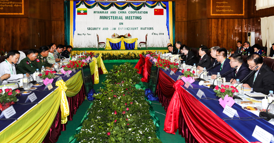 國務(wù)委員、公安部部長趙克志5月8日在內(nèi)比都與緬甸內(nèi)政部部長覺瑞舉行會談。