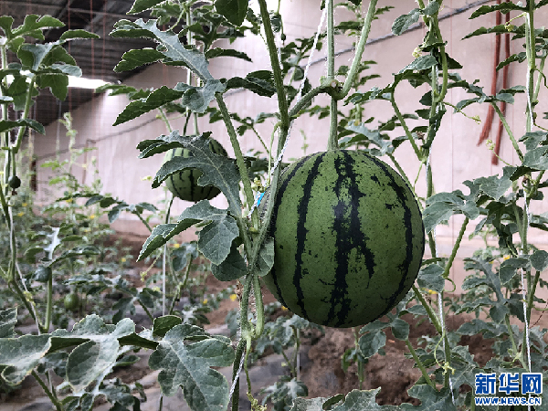 大棚里結出的西瓜。新華網(wǎng) 雪珍攝