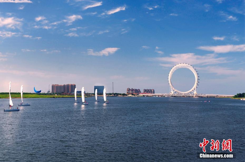 位于山東濰坊濱海區(qū)白浪河入??谔幍氖澜缱畲鬅o(wú)軸式摩天輪“渤海之眼”正式投入使用。文/王勇鋼 袁彥奎 圖/王勇鋼