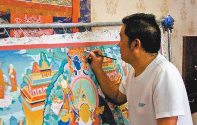 “心靜下來才可以作畫,進(jìn)入狀態(tài)后我可以連續(xù)畫4個小時。一幅唐卡可以保存流傳千年,作畫的人和歷史能夠融為一體?!痹谏<獤|知眼里,“每次創(chuàng)作都是文化的傳承,都是心靈的凈化?!保ㄓ浾?袁泉)