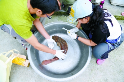 在云南昭通養(yǎng)殖場,中國大鯢無損傷取樣中。陳宏滿 攝