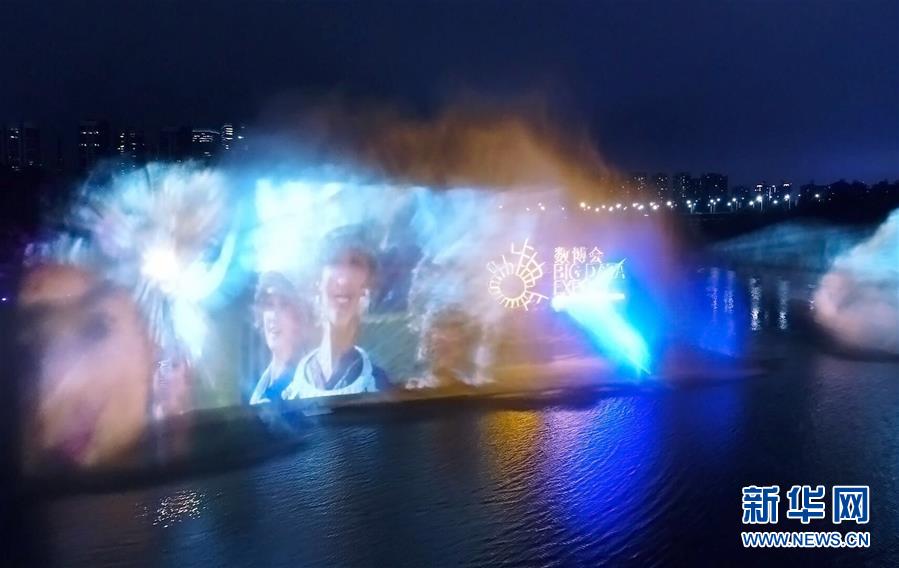 市民在貴陽市觀山湖公園內(nèi)體驗數(shù)谷之夜活動中的水幕電影(5月22日攝)。新華社記者劉續(xù) 攝
