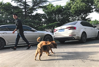 相比不牽狗繩,更令他困擾的是養(yǎng)犬人不收拾狗狗的糞便?!霸缟衔飿I(yè)搞衛(wèi)生的時(shí)候會順便收拾下,這之外就不管了,有些狗在單位門口、樓道口排便,主人也不管,戶主就只能自己清理?!彼г梗幸欢螘r(shí)間,自家的停車位受到了狗狗的青睞,為了不讓狗糞沾車,他只能一大早就下樓清理,“關(guān)鍵它一看上這地兒,就天天在這兒拉,挺頭疼的。”