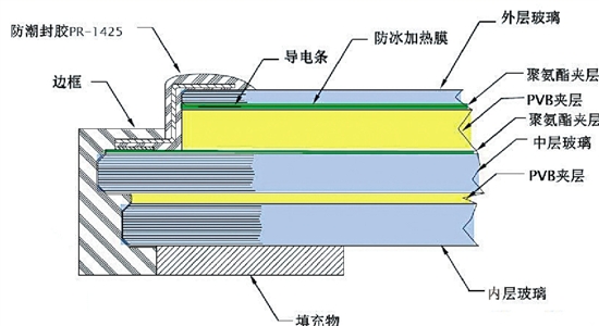 A320系列的風(fēng)擋由多層不同的材料組成,最外層的是熱鋼化玻璃,位于中層和內(nèi)層的是化學(xué)強(qiáng)化玻璃,各層玻璃之間通過聚胺酯層和PVB層粘接在一起。