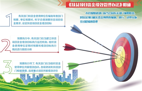 《辦法》明確,扶貧項(xiàng)目資金績效管理應(yīng)遵循目標(biāo)導(dǎo)向、注重效果,統(tǒng)一部署、分工負(fù)責(zé),全程跟蹤、創(chuàng)新管理,壓實(shí)責(zé)任、減輕負(fù)擔(dān)的原則?!凹訌?qiáng)扶貧項(xiàng)目資金績效管理,提升扶貧資金的使用效率和效果,是提高脫貧質(zhì)量和實(shí)現(xiàn)國家精準(zhǔn)脫貧目標(biāo)的關(guān)鍵措施,對(duì)打贏脫貧攻堅(jiān)戰(zhàn)具有重要意義?!必?cái)政部有關(guān)司局負(fù)責(zé)人表示。
