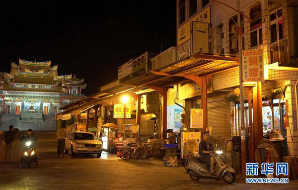 這是在臺(tái)灣嘉義縣東石村的一處夜晚街景(4月9日攝)。新華社記者林善傳攝