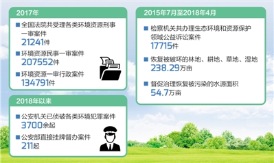6月5日,最高法、最高檢、公安部公布了近年來打擊污染環(huán)境違法犯罪相關(guān)情況。2017年,全國法院共受理各類環(huán)境資源刑事一審案件21241件,審結(jié)20602件;2015年7月至2018年4月,全國檢察機(jī)關(guān)共辦理生態(tài)環(huán)境和資源保護(hù)領(lǐng)域公益訴訟案件17715件;今年以來,全國公安機(jī)關(guān)已偵破各類環(huán)境犯罪案件3700余起,抓獲犯罪嫌疑人5730余名,公安部直接掛牌督辦案件211起。