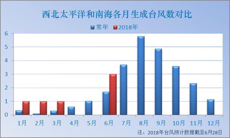 到目前為止,今年西北太平洋和南海已經(jīng)有6個臺風(fēng)生成,1個臺風(fēng)登陸我國,常年1-6月平均會生成4.1個臺風(fēng),登陸0.63個。實(shí)際上今年無論生成臺風(fēng)個數(shù)還是登陸個數(shù)都比常年平均偏多。