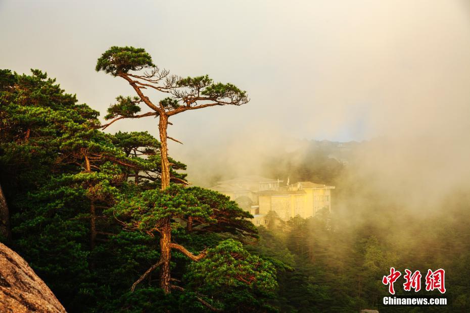 6月29日傍晚,安徽黃山風(fēng)景區(qū)雨后出現(xiàn)云海和晚霞景觀,宛如壯麗畫卷。中新社發(fā) 方立華 攝