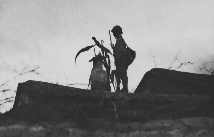 屋頂上警戒的日軍哨兵