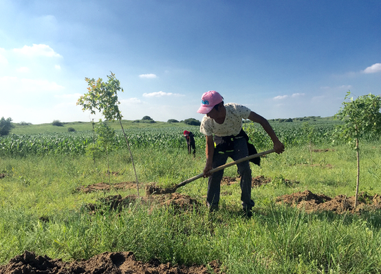村民在科左后旗沙地植樹。 新華網(wǎng) 郭香玉攝