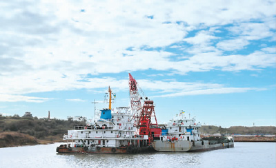由中國港灣工程有限責(zé)任公司承攬,中國交建天津航道局有限公司承建的烏克蘭南方港糧食碼頭疏浚工程2018年1月30日舉行竣工簽字儀式。該項目解決了該港口被淤泥阻塞多年的困擾,對烏克蘭進(jìn)一步擴(kuò)大糧食出口具有戰(zhàn)略意義。圖為一組清淤單元在南方港施工。新華社記者 陳俊鋒攝