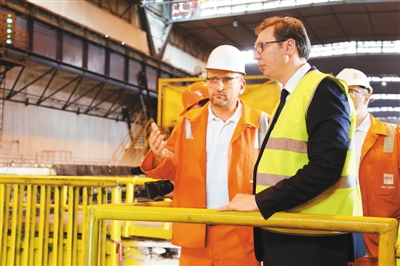 塞爾維亞總統(tǒng)武契奇7月5日出席河鋼塞爾維亞有限公司為正式接管斯梅代雷沃鋼鐵廠兩周年舉行的慶典時表示,中國公司的收購讓該廠獲得成功和進(jìn)步。斯梅代雷沃鋼鐵廠成立于1913年,曾一度面臨倒閉。2016年,中國河鋼集團(tuán)收購該廠。當(dāng)年底,實現(xiàn)盈利。圖為武契奇(右)視察河鋼塞爾維亞有限公司。新華社記者 王慧娟攝