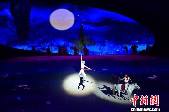 圖為劇目中融入雜技,表現(xiàn)男女主角的愛情故事。翟璐 攝