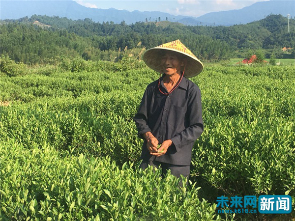 村民在井岡山新城鎮(zhèn)黃金茶基地采茶,說(shuō)起收入非常開心。未來(lái)網(wǎng)記者 楊佩穎攝。