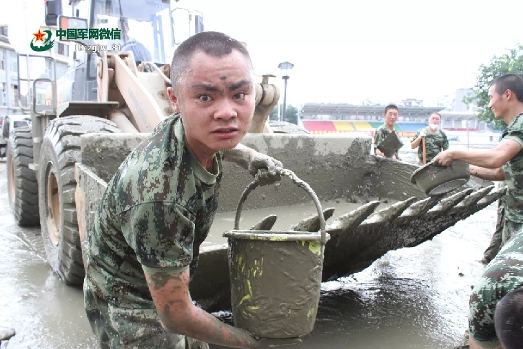 群眾自發(fā)為救災(zāi)官兵送西瓜。劉學(xué)功 攝