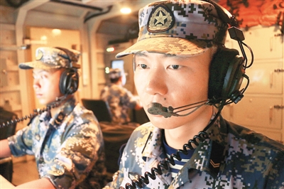 圖為鄭磊在艦上訓(xùn)練。 謝 力攝