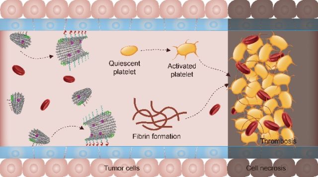 聶廣軍說,納米機器人被注射進體內后,只有腫瘤才具有能打開“鎖”的“鑰匙”?!伴_鎖”后,“殺手”凝血酶被釋放出來,會召集來血小板、纖維蛋白原,幾個小時內在腫瘤血管形成巨大血栓,切斷血液供應,從而“餓死”腫瘤。