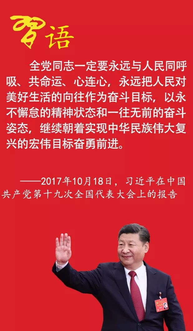 不忘初心,方得始終。中國共產(chǎn)黨人的初心和使命,就是為中國人民謀幸福,為中華民族謀復(fù)興。這個(gè)初心和使命是激勵(lì)中國共產(chǎn)黨人不斷前進(jìn)的根本動(dòng)力。全黨同志一定要永遠(yuǎn)與人民同呼吸、共命運(yùn)、心連心,永遠(yuǎn)把人民對(duì)美好生活的向往作為奮斗目標(biāo),以永不懈怠的精神狀態(tài)和一往無前的奮斗姿態(tài),繼續(xù)朝著實(shí)現(xiàn)中華民族偉大復(fù)興的宏偉目標(biāo)奮勇前進(jìn)。