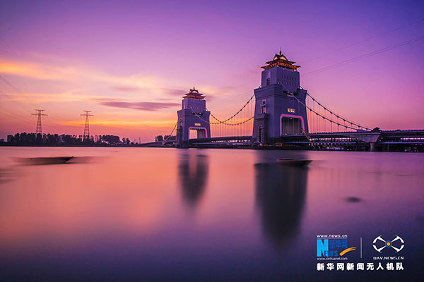 新華網(wǎng)無人機(jī)隊拍攝的江蘇揚(yáng)州萬福大橋。
