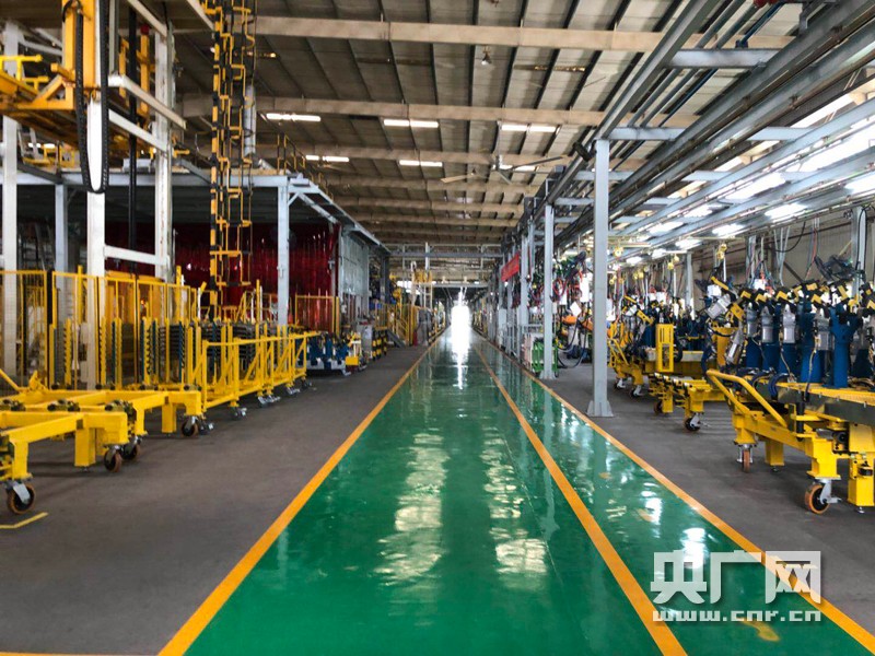 圖為焊裝廠E300,切換夾具區(qū)。(記者 高寒露 攝)