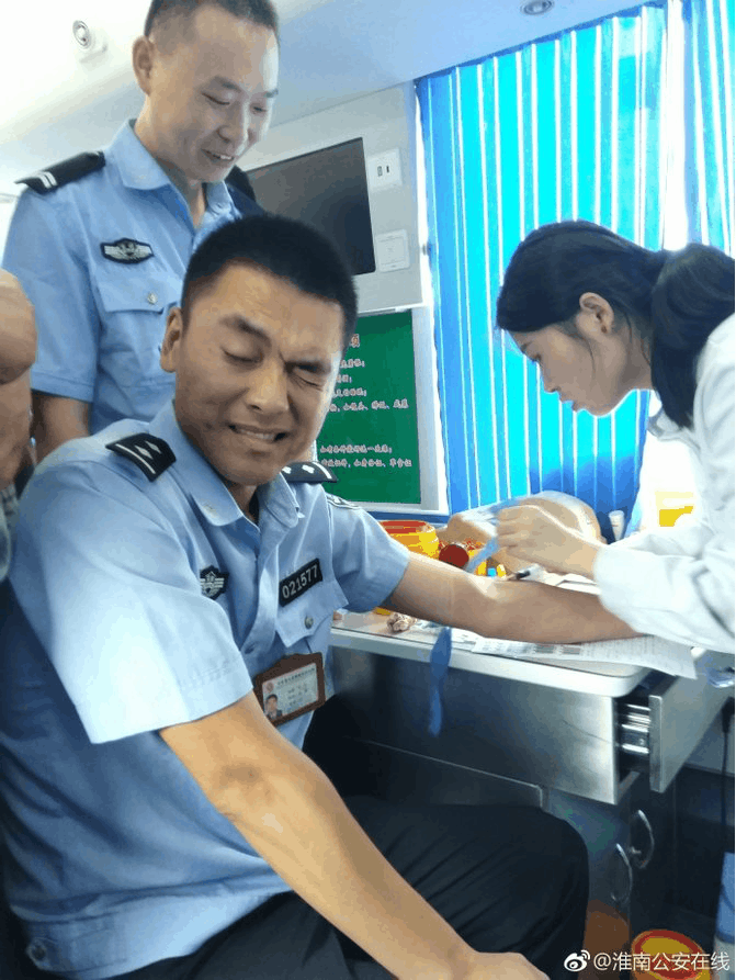 照片中的醫(yī)生為安徽醫(yī)科大學第二附屬醫(yī)院泌尿外科醫(yī)生陳磊,在連續(xù)工作12個多小時后,他累到虛脫,靠喝葡萄糖補充體力。