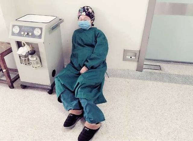 大年初二,河南鹿邑縣人民醫(yī)院手術(shù)室醫(yī)生牛明麗在手術(shù)間隙,坐在地上睡著了。從前日下午3點至當日早晨7點,牛明麗和團隊成員幾乎連軸轉(zhuǎn)完成了10臺手術(shù)。