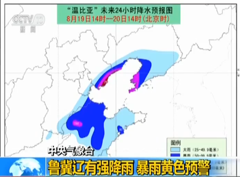 今年第18號臺風(fēng)“溫比亞”已于昨天(18日)下午減弱為熱帶低壓,中央氣象臺解除臺風(fēng)藍(lán)色預(yù)警。但它減弱后的低壓還將繼續(xù)北上,受其影響,仍會給山東、河北、遼寧等地部分地區(qū)帶來強(qiáng)降雨,中央氣象臺上午10點(diǎn)發(fā)布暴雨黃色預(yù)警。