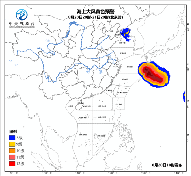 另外,受“溫比亞”變性為溫帶氣旋的影響,20日白天至夜間,渤海、渤海海峽、黃海北部海域、黃海中部偏西海域?qū)⒂?~10級(jí)、陣風(fēng)11~12級(jí)的大風(fēng),黃海中部偏東海域?qū)⒂?級(jí)、陣風(fēng)9~10級(jí)的偏南風(fēng)。