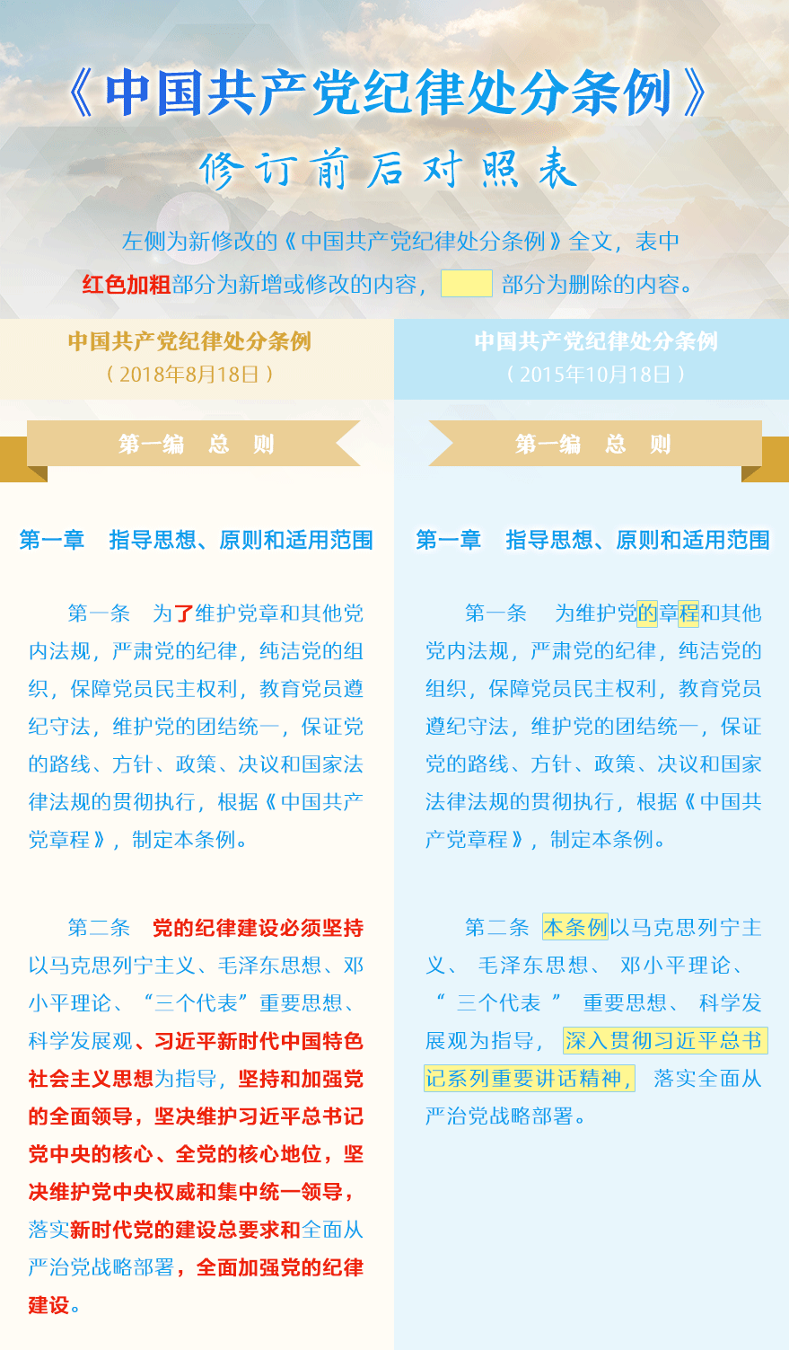 《中國共產(chǎn)黨紀律處分條例》修訂前后對照表-新華網(wǎng)