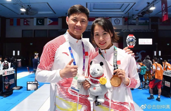 雷聲與獲得亞運會女花個人銀牌的傅依婷。