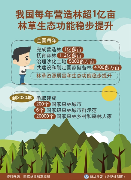 圖表:我國每年營造林超1億畝 林草生態(tài)功能穩(wěn)步提升 新華社發(fā) 邊紀紅 制圖