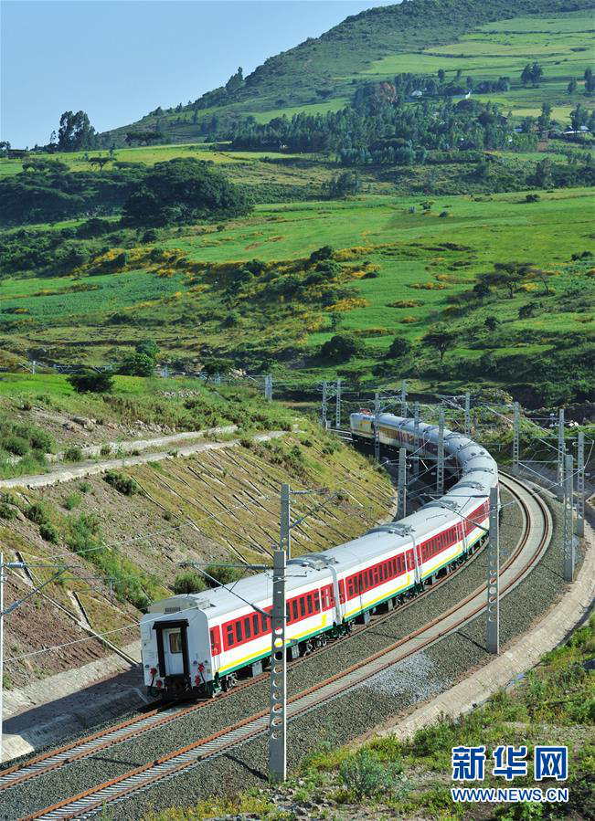 2016年10月3日,在埃塞俄比亞首都亞的斯亞貝巴附近,一列試運行列車在亞吉鐵路上行駛。2016年10月5日,由中國企業(yè)建設(shè)、連接埃塞俄比亞和吉布提兩國首都的亞的斯亞貝巴-吉布提鐵路(亞吉鐵路)正式通車,成為非洲第一條電氣化鐵路。? 新華社記者李百順攝