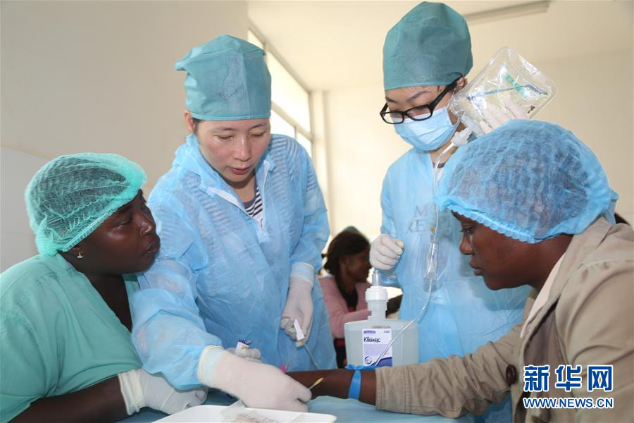 2014年12月10日,在塞拉利昂首都弗里敦,中國人民解放軍援助西非抗擊埃博拉疫情醫(yī)療隊為中塞友好醫(yī)院開展輸液培訓(xùn)活動。? 新華社發(fā)(戴欣攝)