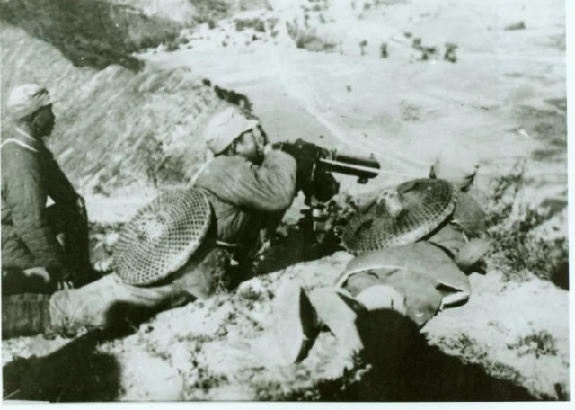 八路軍115師戰(zhàn)士在平型關(guān)公路兩側(cè)伏擊日軍