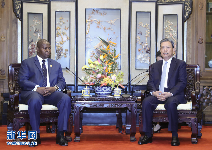 9月6日,中共中央政治局常委、中央紀(jì)委書(shū)記趙樂(lè)際在北京釣魚(yú)臺(tái)國(guó)賓館會(huì)見(jiàn)中非總統(tǒng)圖瓦德拉。 新華社記者 丁林 攝