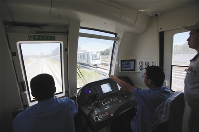 2018年9月6日,年底即將開通的地鐵8號線三期四期正在進行列車上線運行調試。 資料圖片/新京報記者 王貴彬 攝
