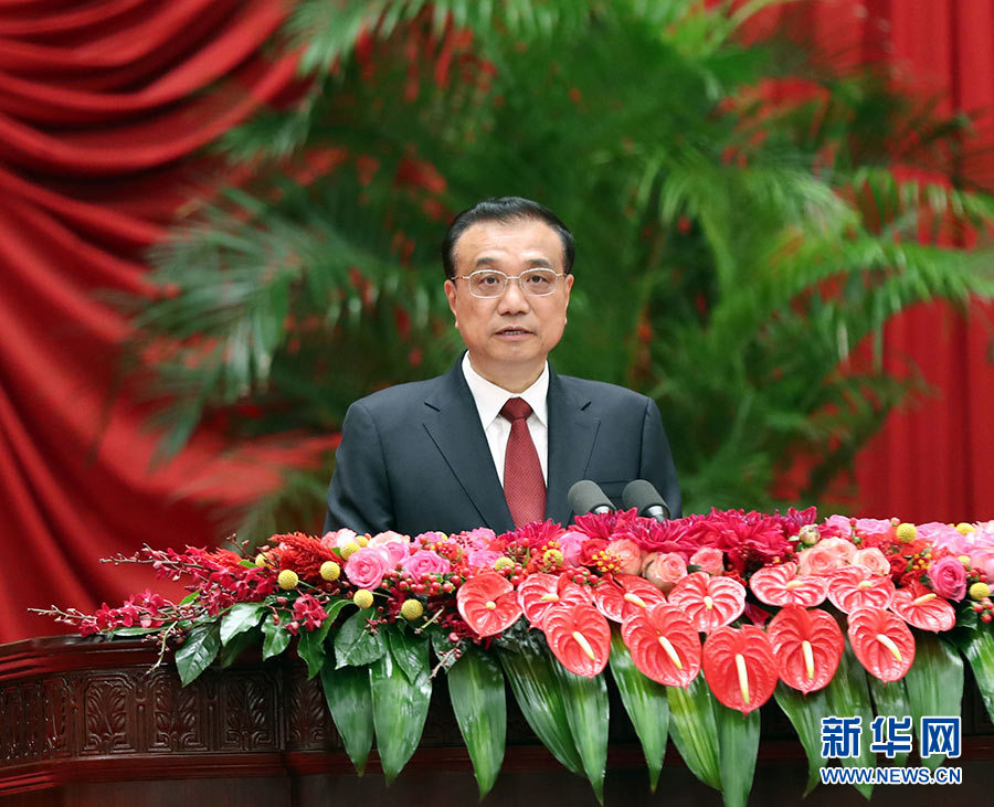 李克強(qiáng)最后說(shuō),偉大事業(yè)需要全體中國(guó)人民共同奮斗、克難攻堅(jiān)。讓我們更加緊密團(tuán)結(jié)在以習(xí)近平同志為核心的黨中央周?chē)?,高舉中國(guó)特色社會(huì)主義偉大旗幟,腳踏實(shí)地,開(kāi)拓創(chuàng)新,為實(shí)現(xiàn)“兩個(gè)一百年”奮斗目標(biāo)、建設(shè)富強(qiáng)民主文明和諧美麗的社會(huì)主義現(xiàn)代化國(guó)家、實(shí)現(xiàn)中華民族偉大復(fù)興中國(guó)夢(mèng)而不懈努力!