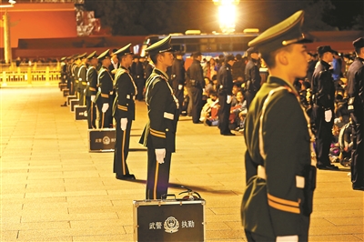 十一期間,來(lái)天安門(mén)廣場(chǎng)游覽的游客不難發(fā)現(xiàn),在各個(gè)景點(diǎn),總是能邂逅一抹“橄欖綠”,他們就是執(zhí)勤在天安門(mén)廣場(chǎng)的武警北京總隊(duì)天安門(mén)地區(qū)支隊(duì)的戰(zhàn)士們。為確保廣大來(lái)往游客安全、順利出行,武警北京總隊(duì)天安門(mén)地區(qū)支隊(duì)的官兵們?nèi)珕T出動(dòng),可以說(shuō)沒(méi)有瞬間的松懈。北京青年報(bào)記者在十一期間探訪了在天安門(mén)廣場(chǎng)多個(gè)地點(diǎn)執(zhí)勤的武警戰(zhàn)士,記錄了他們的故事。