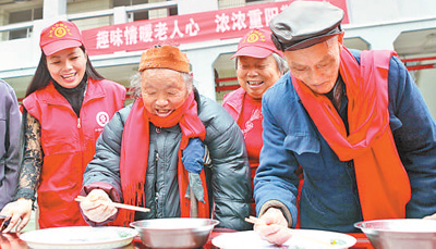 10月15日,重慶市永川區(qū)雙石鎮(zhèn)敬老院里歡歌笑語、熱鬧非凡,雙石鎮(zhèn)機關、社區(qū)的志愿者在此開展“趣味情暖老人心 濃濃重陽敬老情”主題活動,為30余名老人送去重陽節(jié)的祝福。圖為老人在志愿者的助威聲中玩夾彈珠游戲。劉新吾 陳仕川攝影報道