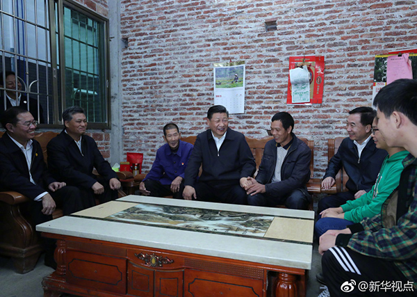 23日下午,習(xí)近平一行沿著崎嶇的山路乘車來(lái)到廣東省英德市連江口鎮(zhèn)連樟村,走進(jìn)村公共服務(wù)站、扶貧玩具加工廠車間和貧困戶家中,同村民們親切交談。他強(qiáng)調(diào),全面建成小康社會(huì)一個(gè)都不能少,在脫貧攻堅(jiān)戰(zhàn)中,基層黨組織要發(fā)揮戰(zhàn)斗堡壘作用,一任接著一任抓,一仗接著一仗打,一代接著一代干,積小勝為大勝,最后取得全面勝利。要認(rèn)真抓好鄉(xiāng)村振興戰(zhàn)略,在脫貧致富基礎(chǔ)上加快推動(dòng)鄉(xiāng)村全面振興,實(shí)現(xiàn)農(nóng)業(yè)農(nóng)村現(xiàn)代化。我們相信,我國(guó)廣大農(nóng)民生活一定能越來(lái)越幸福。(記者:張曉松、鞠鵬)