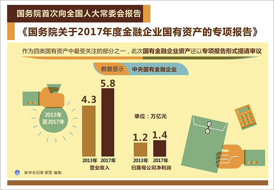 圖表:國務(wù)院首次向全國人大常委會(huì)報(bào)告《國務(wù)院關(guān)于2017年度金融企業(yè)國有資產(chǎn)的專項(xiàng)報(bào)告》 新華社記者 崔瑩 編制