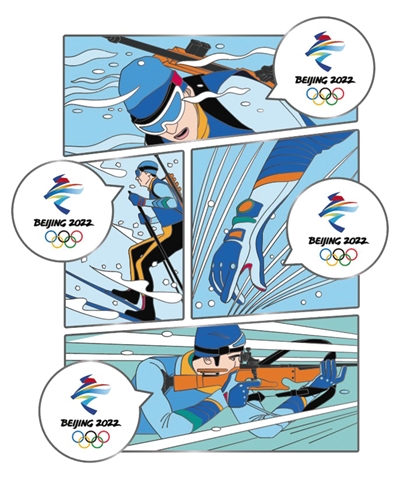入圍作品之一,含有漫畫元素的冬奧會拼圖徽章。
