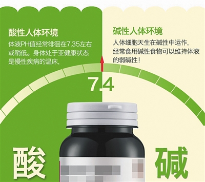 新京報記者查閱資料發(fā)現(xiàn),“酸堿體質(zhì)理論”基本觀點認(rèn)為,人體體液的pH值處于7.35~7.45 的弱堿狀態(tài)是最健康的,但很多人由于生活習(xí)慣及環(huán)境的影響成“酸性體質(zhì)”,會造成多種疾病甚至癌癥。