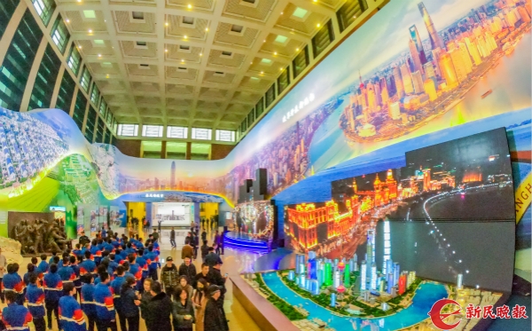圖說:上海展區(qū)的視頻和沙盤展示著建設成就。新民晚報記者 孫中欽 攝