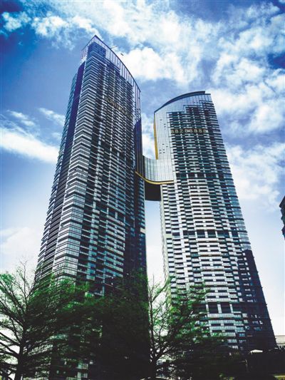 創(chuàng)新之城從不缺乏創(chuàng)新人才。在東海國際公寓施工中,要數(shù)空中連廊連接最難,要將總重約700噸的鋼結(jié)構連廊提升至180米的高空處。經(jīng)過長達半個月的討論和研究,邵寶奎和同事最終決定采用液壓整體提升技術,先在地面上將連廊拼接完畢,最后一次性提升至高空。這在工地施工中還很少使用。