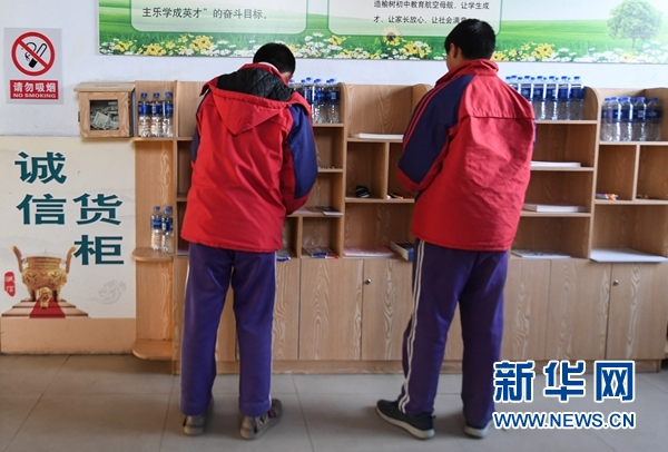 11月30日,在吉林省榆樹市五棵樹鎮(zhèn)中學(xué),學(xué)生們在“誠信貨柜”選購商品。新華社記者 張楠攝