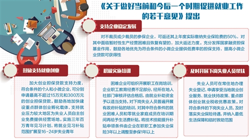 今年以來,我國就業(yè)形勢總體穩(wěn)定,穩(wěn)中有進。但是,個別地區(qū)、個別企業(yè)還面臨著一些新挑戰(zhàn)。為穩(wěn)定就業(yè),擴大幫扶范圍,增強支持力度,國務院日前印發(fā)《關于做好當前和今后一個時期促進就業(yè)工作的若干意見》,為相關部門和地方政府做好就業(yè)工作提供了明確的目標和方向——