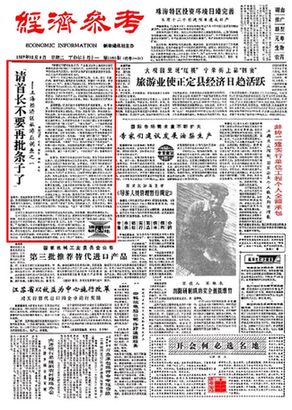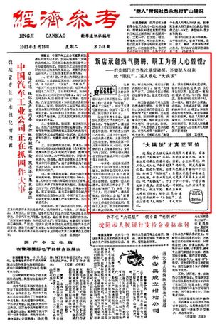 80年代初,改革的東風讓經(jīng)濟建設的熱潮,一浪高過一浪,新華社想辦一份綜合性經(jīng)濟報紙,時任新華社國內(nèi)部副主任的李峰建議,報紙采用“經(jīng)濟參考”作為報名,第一可以有些“神秘”色彩,第二說話可以放開一些。新華社黨組采納了他的意見。